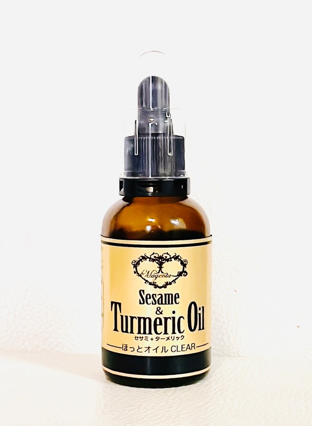 ほっとオイルクリア Sesame Oil(肌油)に奄美産ウコン(ターメリック)の成分を溶かしこんだオイルです。 ウコン(ターメリック)は殺菌、抗菌作用があり、特にお肌のトラブルでお悩みの方に最適なオイルです。ほっとオイルをお肌に塗布するとサラサラに仕上るためサラサラ感がお好きな方にはピッタリなオイルです。 ★特徴★ ○Sesame Oil(肌油)「クリア」 Magentaサロンオリジナル製品と同様 ○殺菌、抗菌作用 ○サラサラな使用感 ○赤ちゃんのおむつかぶれ ○あせも等 ○ニキビ、アトピー等 ★お勧めの使用方法★ 〇マッサージ (お顏)少し多めのSesameOil(肌油)「クリア」を手に取り、お顔につけ、やさしくマッサージします。お顔の中心から外へ指をすべらせます。 マッサージ後は、しばらくそのまま放置し(5分程度)ほっとタオルやティッシュ等で余分な油分を拭取ります。 クレンジングにも使えます。 (身体) マッサージをするときは、強いカでするのではなく、やや弱いくらいの力でゆっくりとマッサージをします。摩擦が生じないようオイルは多めに使用します。 〇頭皮 指のはらにオイルを少量つけて、こめかみから指を"くしのように差し込みます。 全体を揉みこむようにマッサージします。耳のすぐ上の部分に目のツボがあります。 ここを強めにマッサージすると、目の疲れに効果的です。 指に残ったオイルで、外耳のマッサージをも!外耳にはたくさんのツボがありますのでストレスの軽減になります。 ★保管、ご使用上の注意とお願い★ ●Sesame Oil(肌油)「クリア」 Magentaサロンオリジナル製品と同様 ※ほっとオイルはとてもデリケートなオイルです。保管は暗所が最適です。 ●開栓後は3ヶ月を目処にお早めにお使い下さい。 無香料・無添加 日本製 【容量】 55ml